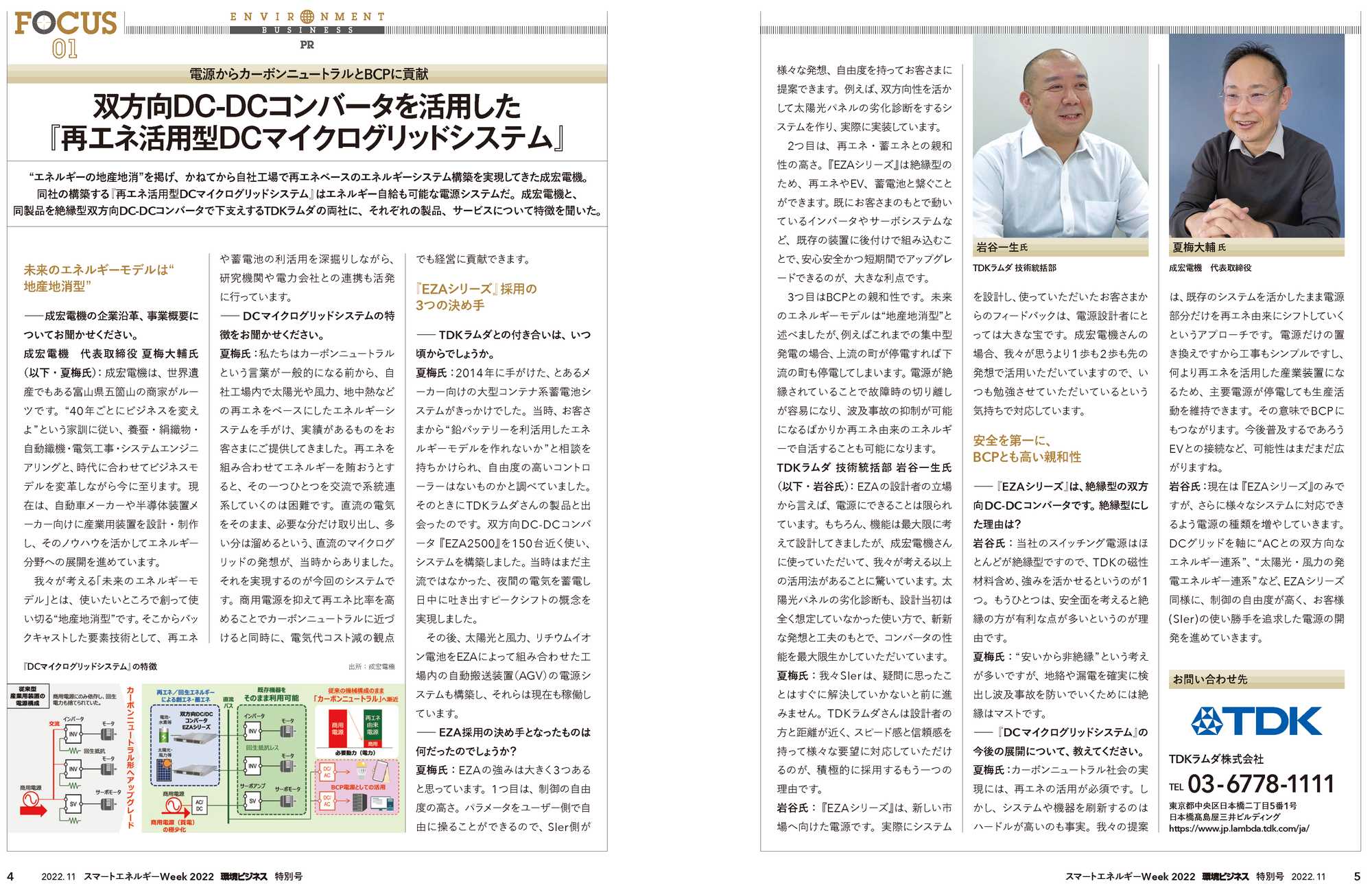 弊社が取り組んでいるエネルギーの地産地消を「環境ビジネス」にて取り上げて頂きました。